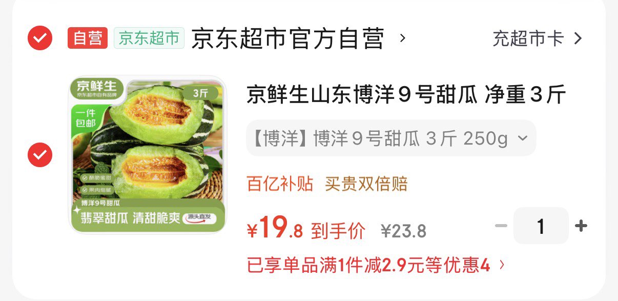 京鲜生山东博洋9号甜瓜