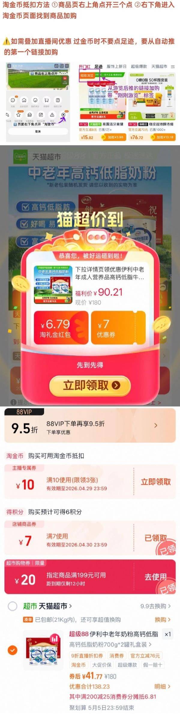 右上角进入直播间领9折主播券,商品下领10券加购