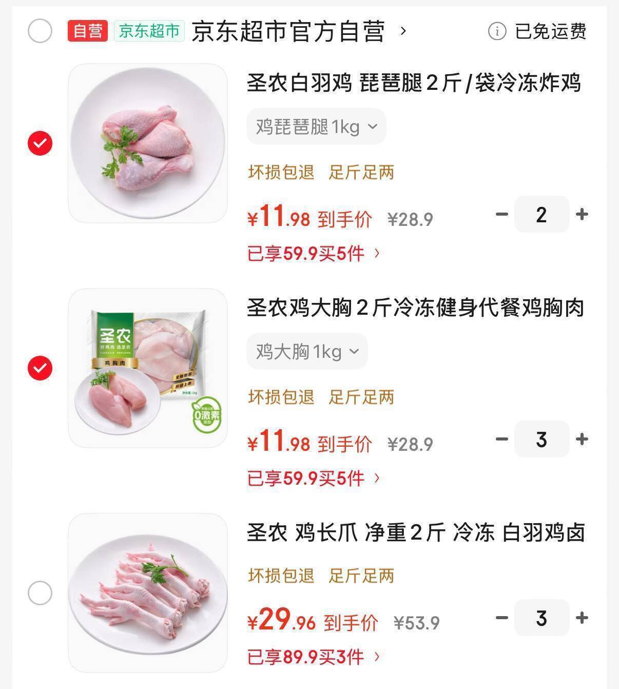 1 琵琶腿/鸡翅根/鸡胸肉2斤