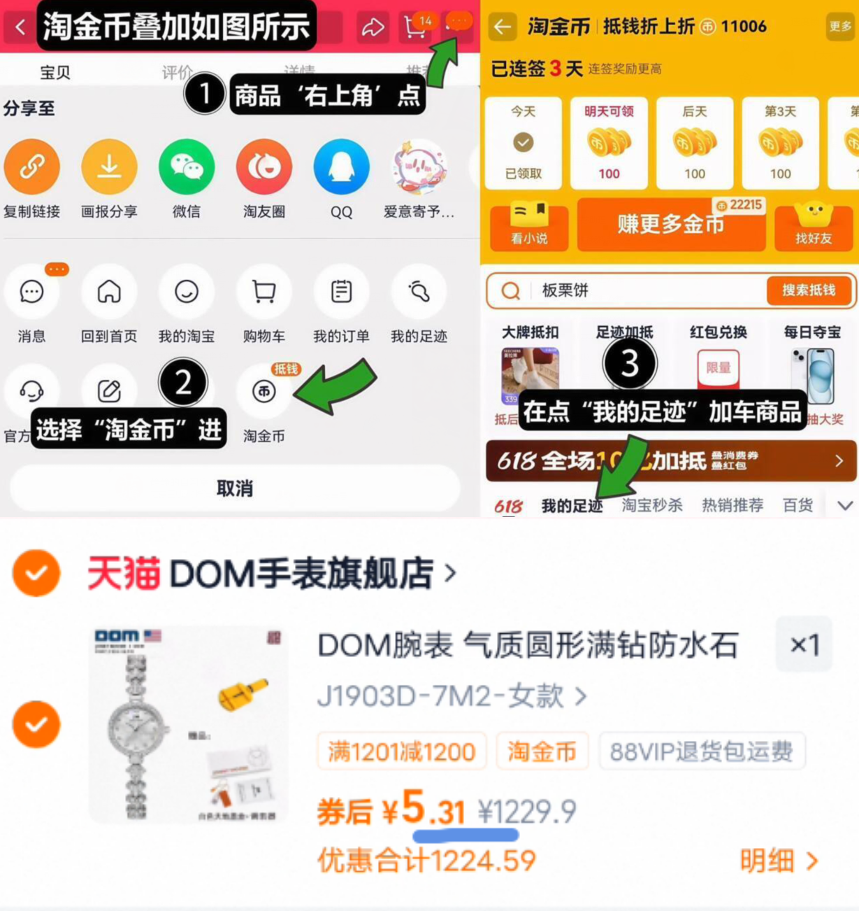 DOW手表 5.3元发报员Z2026年04月17日 18:280举报 速度锁,手慢无5.3元!DOW手表,快https://m.tb.cn/h.iKZftqJ①如图点右上角3个点,选淘金币②选我的足迹-找到商品拍下复制文案