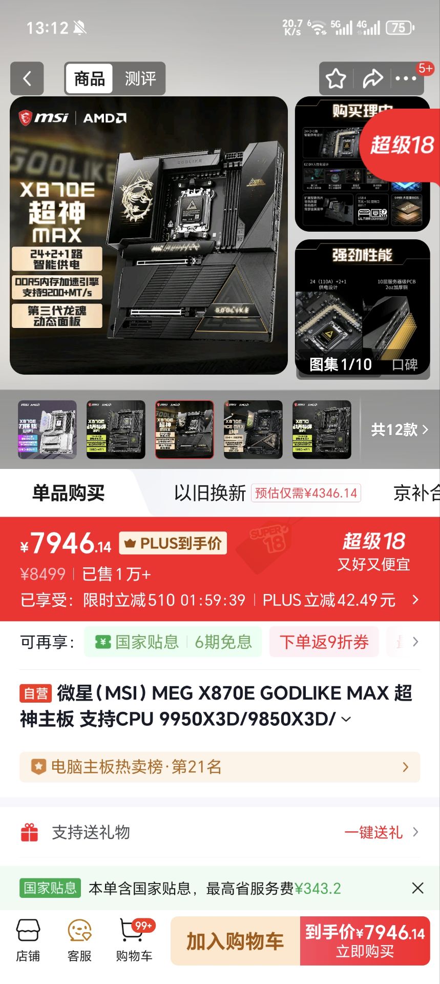 东哥自营微星 X870E GODLIKE MAX超神主板7989弹限时成立