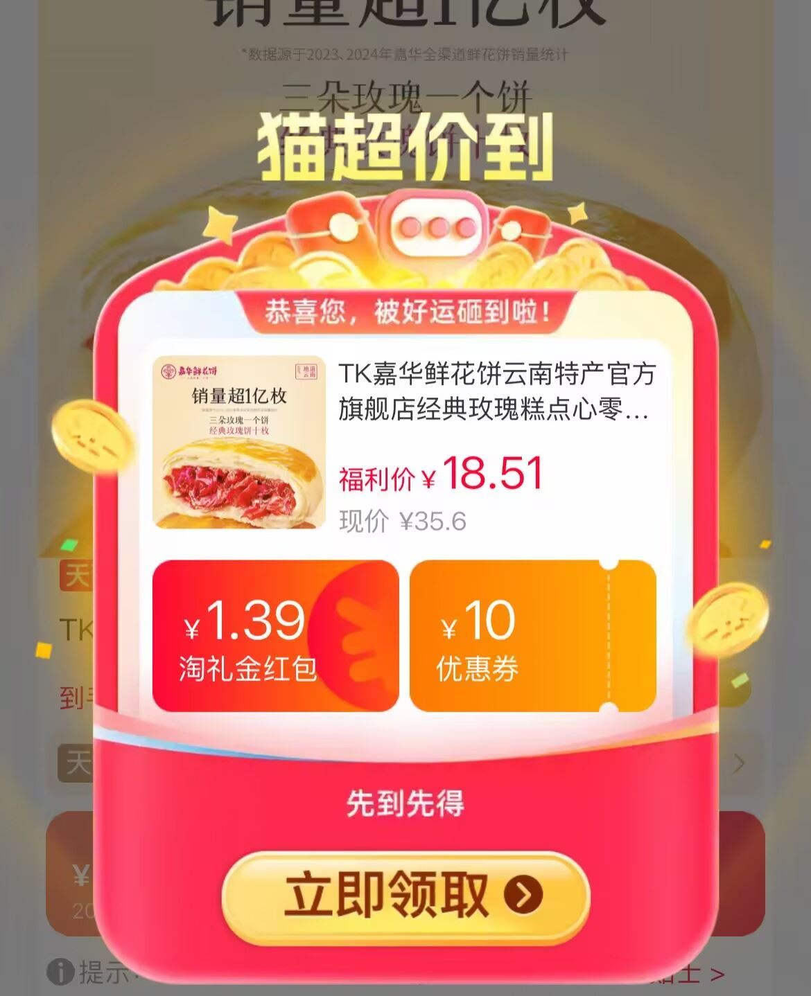 嘉华鲜花饼35g*10枚 18.5元发报员Z2026年04月18日 14:450举报 18.5!叠弹出天降礼金【嘉华】鲜花饼35g*10枚云南本地特产 当地老字号饼皮酥脆的直掉渣 爱舍啦!-https://m.tb.cn/h.iKJ4Rcs复制文案