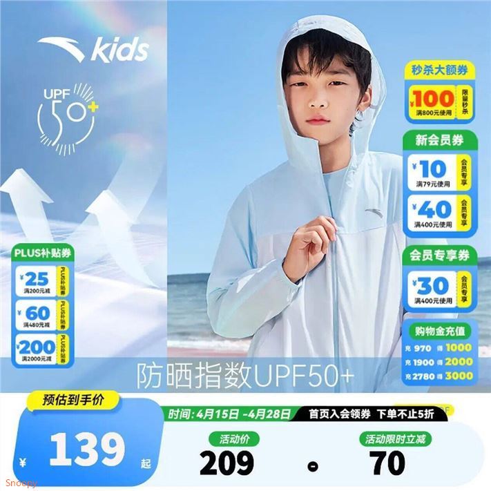 安踏 男女童小光甲防晒衣