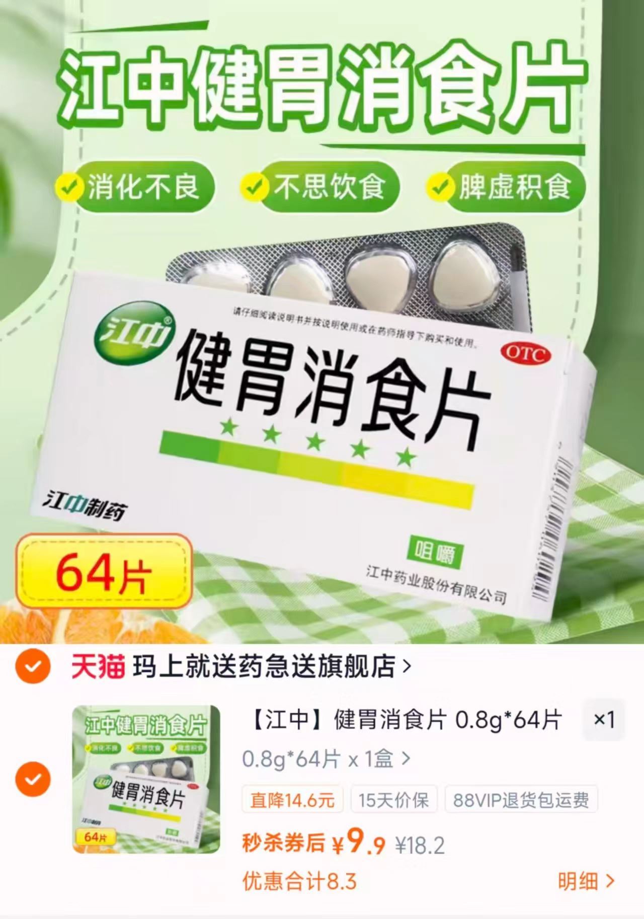江中健胃消食片拍一到手64片 9.9元发报员Z2026年04月18日 18:080举报 9.9元江中 健胃消食片 拍一到手64片 大餐救星酸甜口感,助力肠道消化胡吃海喝无压力,赶紧搶-https://m.tb.cn/h.iKFZ5V2复制文案