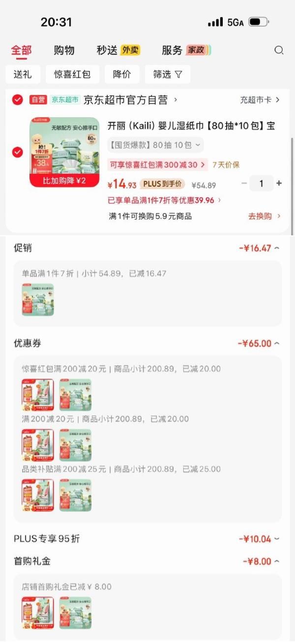 开丽(Kaili)婴儿湿纸巾80抽*10包