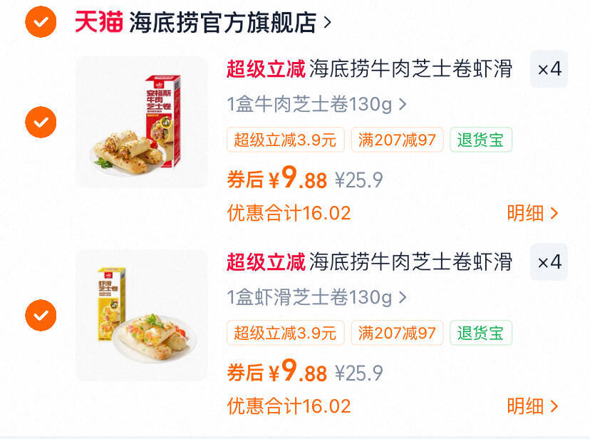 海底捞牛肉芝士卷虾滑卷拍8件79元发报员Z2026年04月19日 08:360举报 海底捞牛肉芝士卷虾滑卷 拍8件79元 9.8元/盒!放空气炸锅烤几分钟就能吃https://m.tb.cn/h.irJ5OEx复制文案
