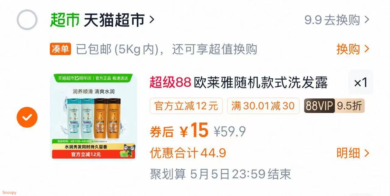 欧莱雅洗发露润发乳4瓶100ml vlp 15元发报员Z2026年04月19日 08:510举报 欧莱雅洗发露&润发乳*4瓶100ml vlp15元 3.7/瓶假期出游/出差方便携带~https://m.tb.cn/h.iqUnMet复制文案
