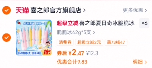 喜之郎夏日奇冰脆脆冰45g 任选6件14.8元发报员Z2026年04月19日 10:290举报 折4毛/支 任选6件14.8元 限时加赠四只含赠共34支【喜之郎】夏日奇冰脆脆冰45ghttps://m.tb.cn/h.iq6IzZM复制文案