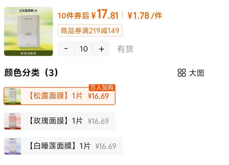 PMPM面膜任选10片 17元