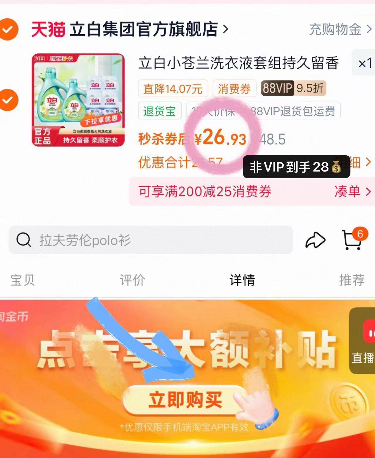 立白小苍兰洗衣液 10斤 26元发报员Z2026年04月19日 16:560举报 2.6元/斤 立白小苍兰洗衣液 下拉详情叠金币 26 得10斤https://m.tb.cn/h.iJeknex-消耗品好扴屯!!不用凑上車复制文案