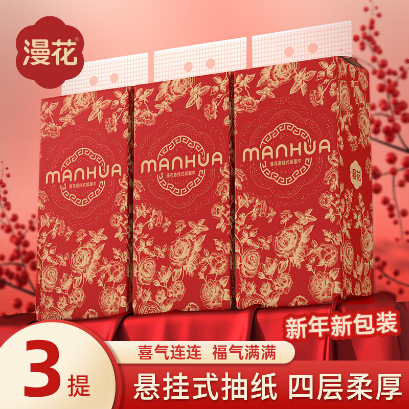 7.9元 漫花 悬挂式抽纸 4层 1120张*3提