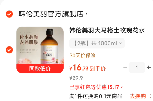 韩伦美羽玫瑰花水爽肤水2瓶 16.3元发报员Z2026年04月19日 20:340举报 8.1元/瓶速度,拍下16.3元韩伦美羽玫瑰花水爽肤水2瓶https://u.jd.com/jr9rEC0复制文案