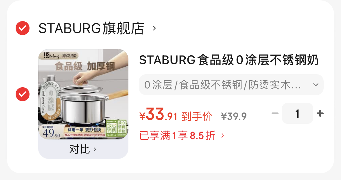 STABURG不锈钢汤锅18cm 33.9元