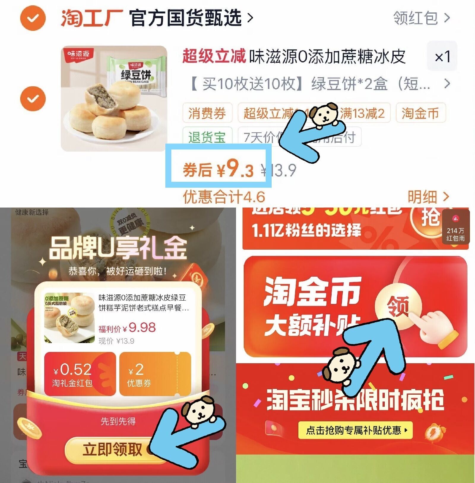 味滋源冰淇淋绿豆饼2盒20枚 9.3元
