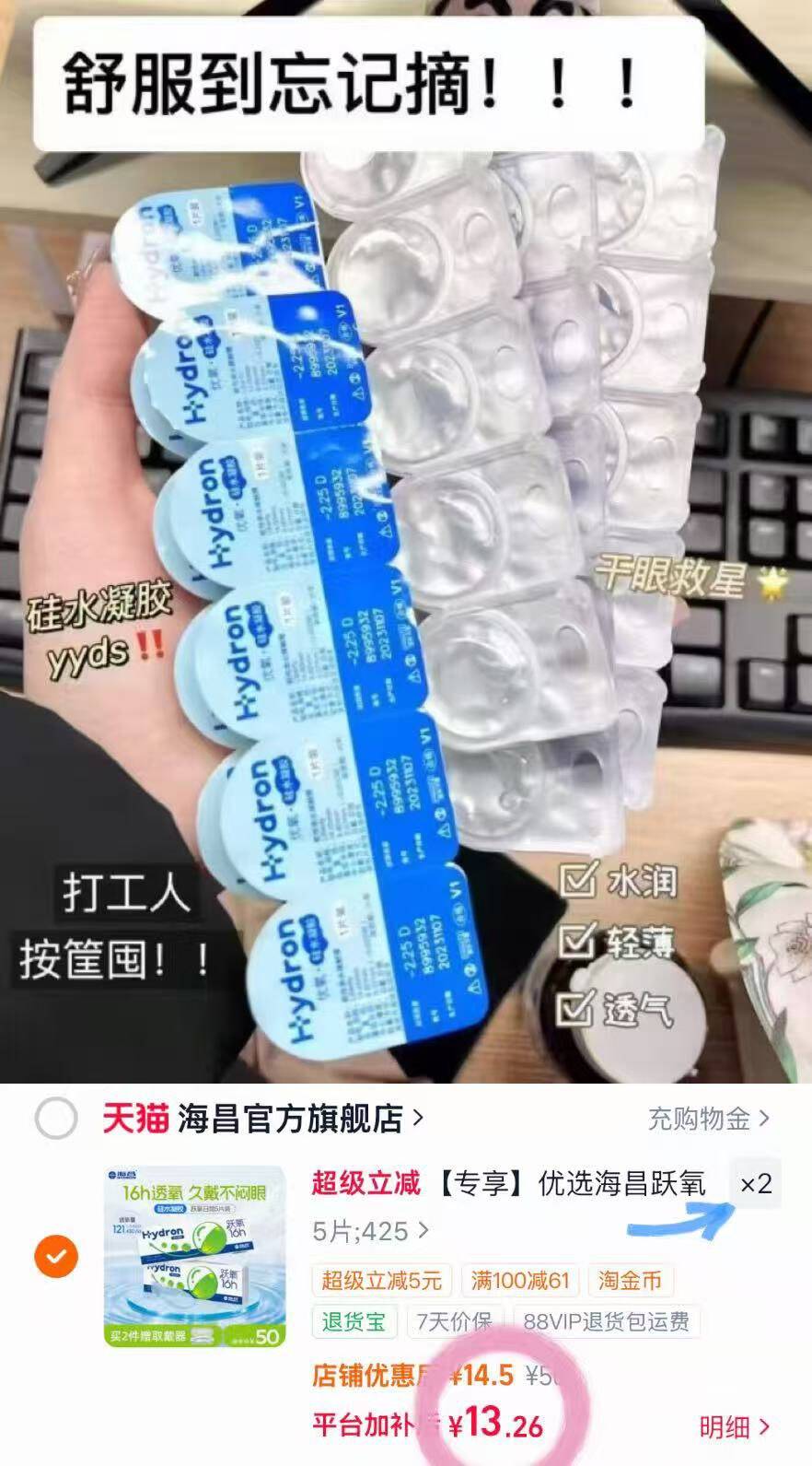 海昌跃氧隐形眼镜日抛10片 26元,海昌跃氧隐形眼镜日抛5片 2件 26元发报员Z2026年04月20日 15:060举报 26元海昌跃氧隐形眼镜日抛10片岭卟贴和卷后 5片选项 2件https://m.tb.cn/h.iJ6zoUc-她家隐形超好戴!第1次来活栋!复制文案