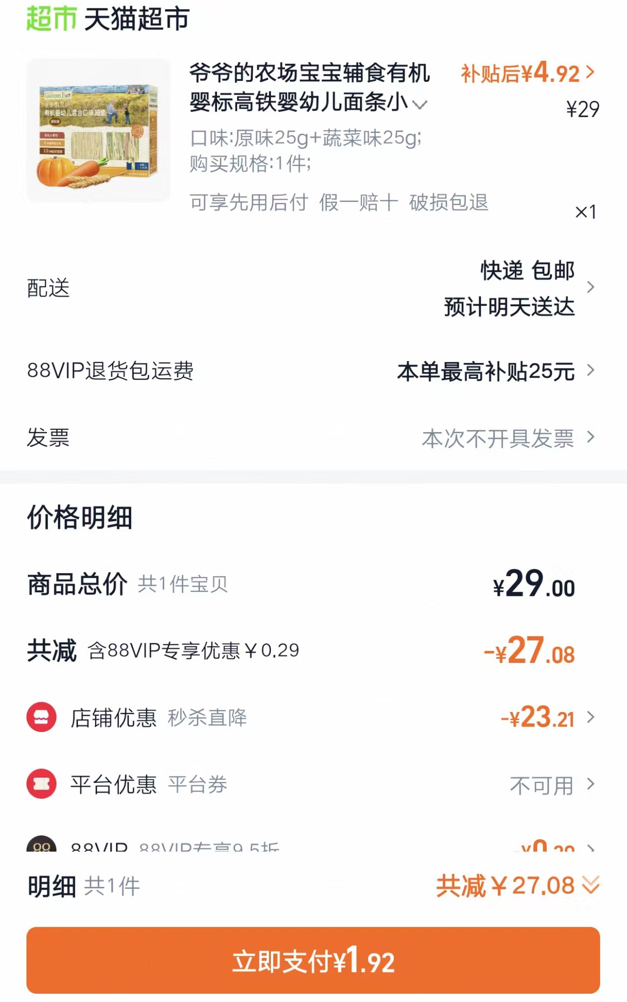 爷爷的农场宝宝碎碎面50g 1.92元发报员Z2026年04月20日 21:040举报 猫超首页搜 爷爷的农场 领3品牌金爷爷的农场宝宝碎碎面50g 1.92元品牌金结算页面抵扣https://m.tb.cn/h.ir3SQVy复制文案