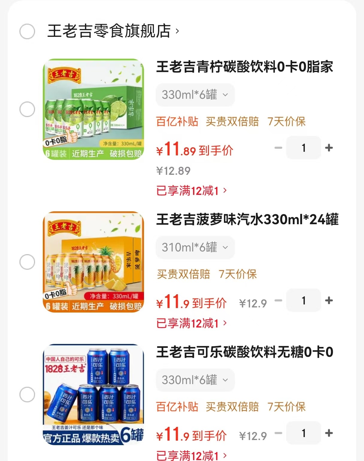 王老吉 可乐碳酸饮料无糖0卡0脂330ml*6罐【11.9】