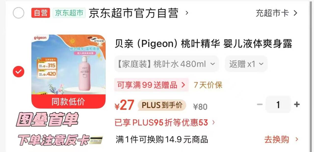 贝亲桃叶精华爽身露480ml