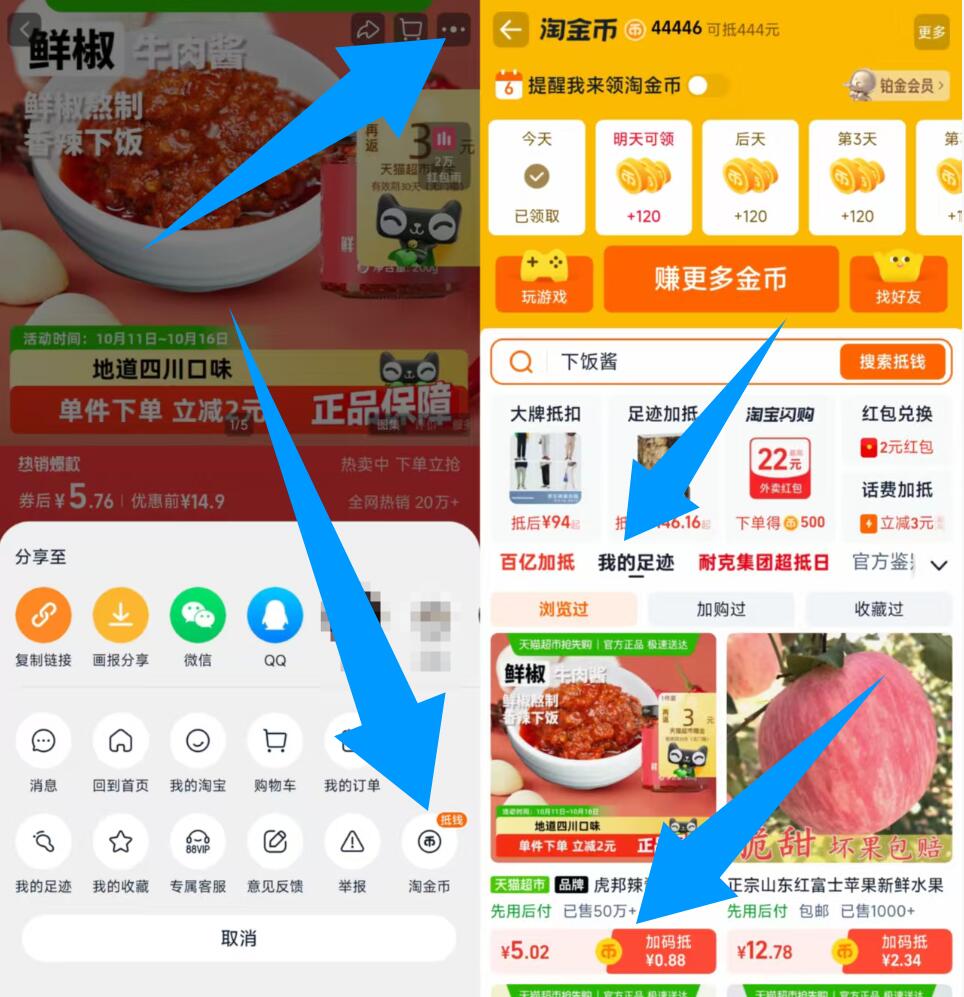 商品右上角3个点,选淘金币