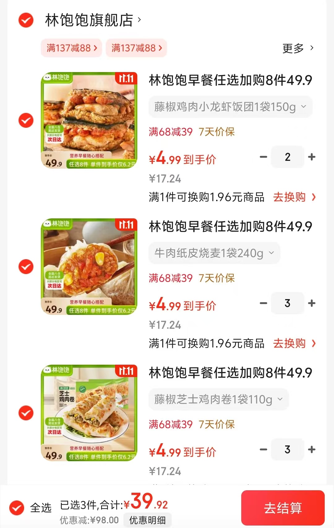 林饱饱 纸皮烧麦/芝士牛肉卷等