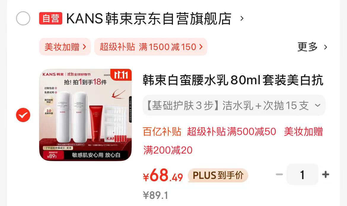 plus到手68.49元 赠品红蛮腰洁面60g+377次抛(1.5mI*5)*3