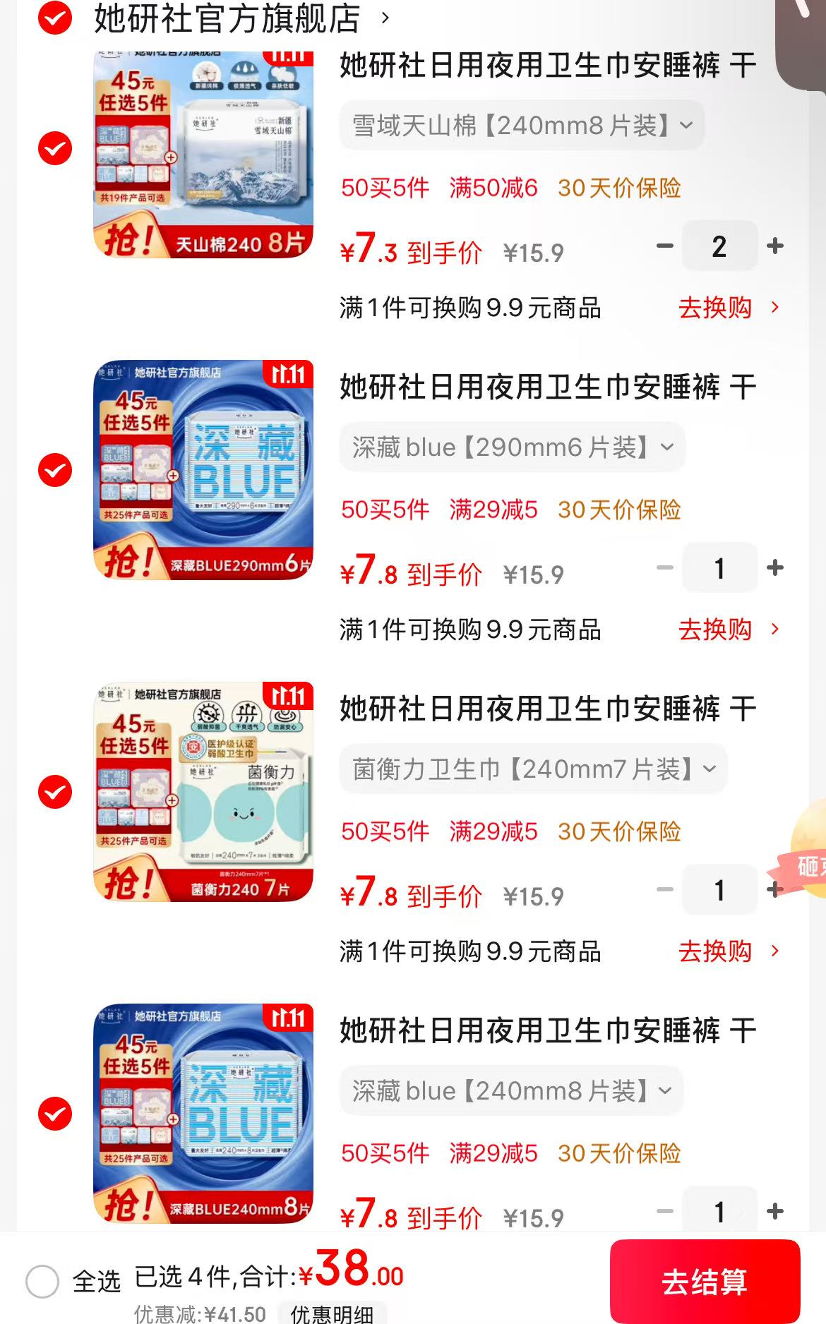 她研社 卫生巾/安睡裤/护垫全周期组合