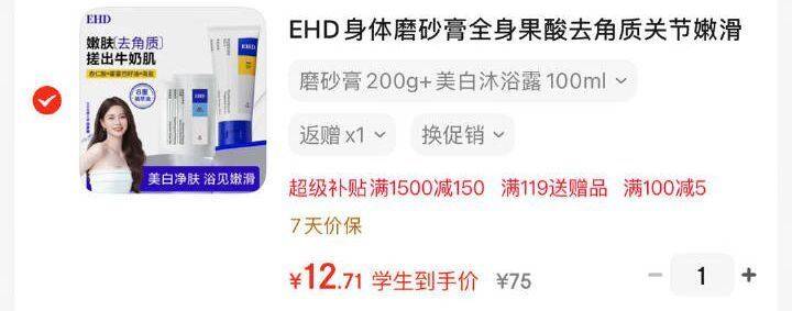 EHD身体磨砂膏全身果酸去角质关节嫩滑肌肤+美白沐浴露100ml*1