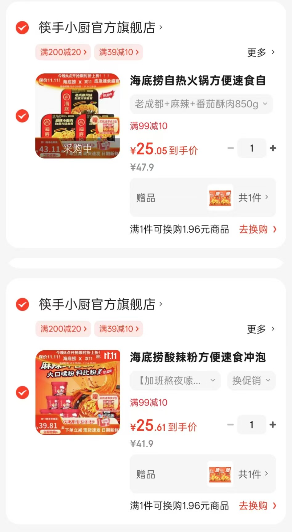 ②25.05元 自热火锅 老成都+麻辣+番茄酥肉850g