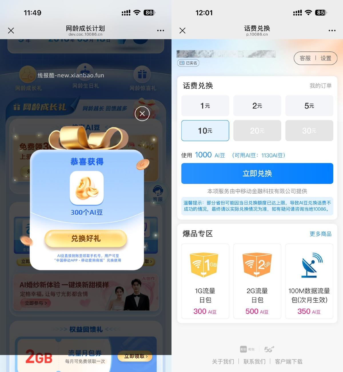 移动领取AI豆兑换1~30亓话费小刀2025年10月11日 12:110举报先领100~500个AI豆,再去兑换话费就行了,如果没库存就次日再兑换领AI豆:https://tb3.cn/ADK44T兑话费:https://tb3.cn/AJuj4f复制文案原文地址:https://www.x6d.com/i-wz-30042.html版权声明:本站作为免费线报整合平台,文章快照抓取源于网络。临时存储未经验证,本站不参与任何平台活动,请自行甄别,谨防受骗!