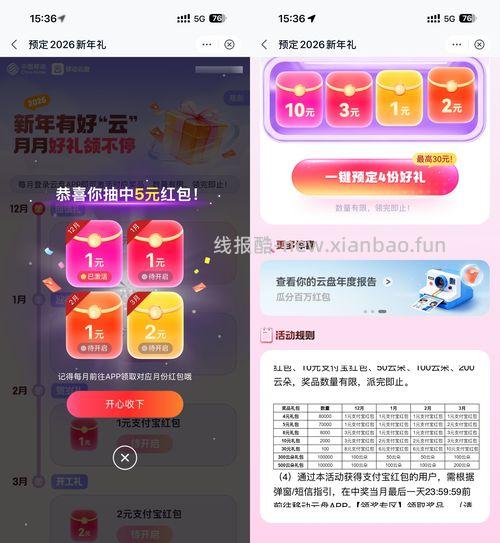 【移动预定新年礼抽4~30亓红包】三网用户均可参与!跳转到移动云盘APP->直接抽4~30亓红包,每个月可领对应红包