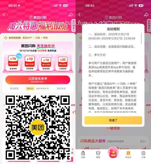 【美团抽30万份30亓闪购免单】美团APP扫码->今天11/12/14/16点会放水,抽啤酒/水果/闪购免单神券
