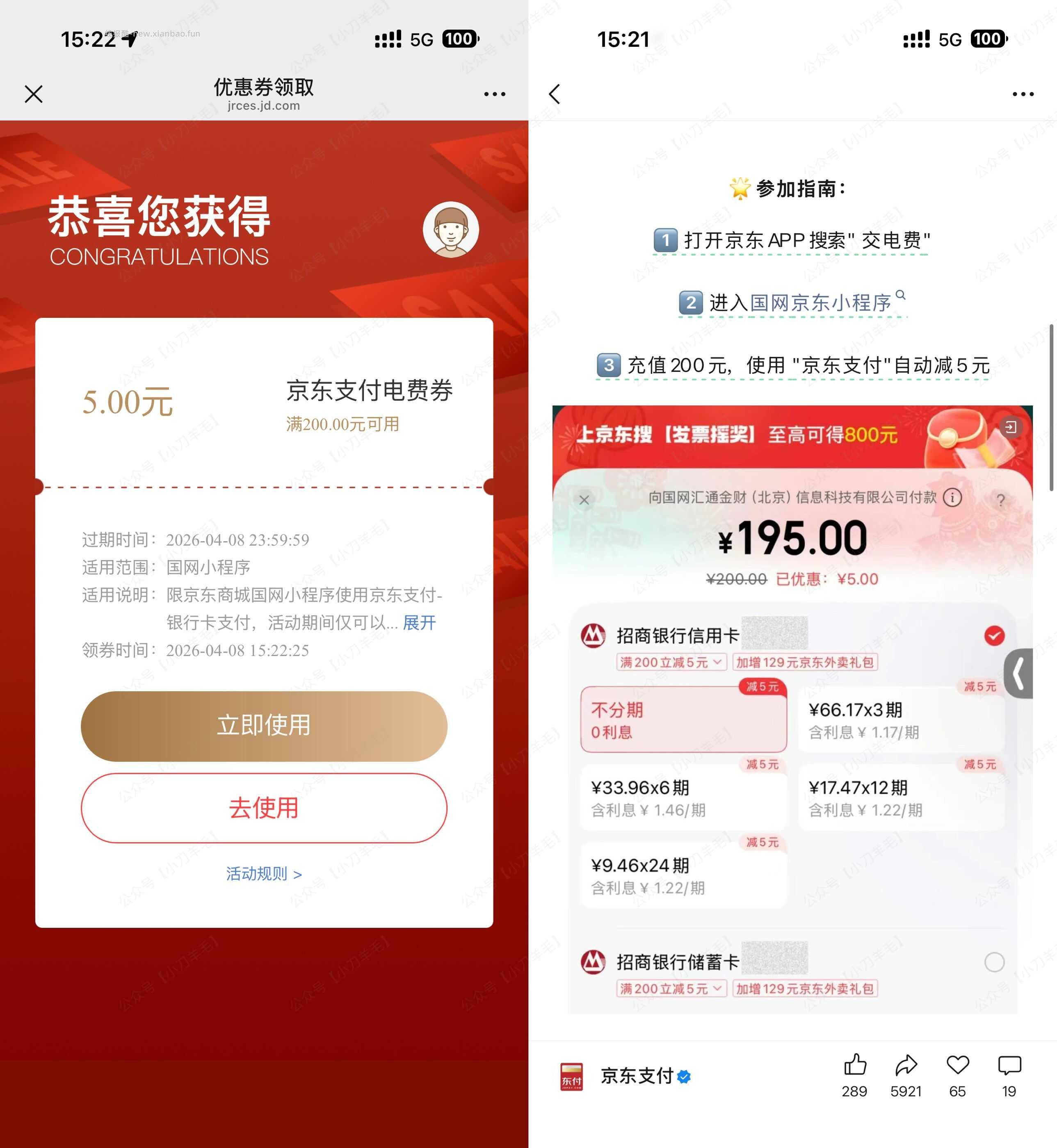 微信打开活动->点图进入活动,领200-5亓电费券,仅限今日可用